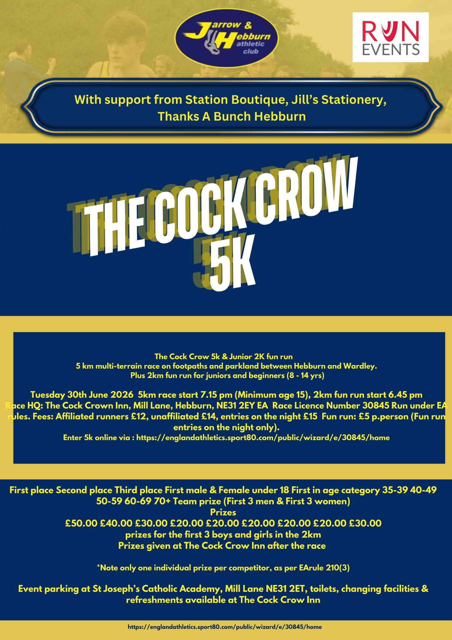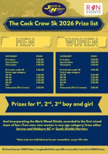 Race headquarters, registration and awards presentation for both events will be at the Cock Crow Inn, Mill Lane, Hebburn, NE31 2EY.